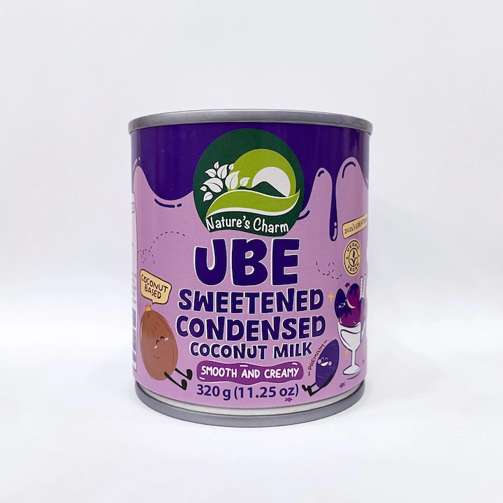 Dairy-free sweetened condensed coconut milk with ube (purple yam) flavour. Vegan, soy-free, and gluten-free. A plant-based alternative for baking, desserts, and traditional condensed milk recipes.